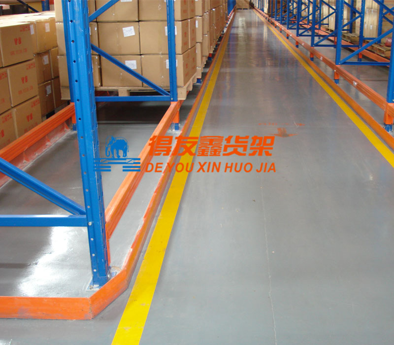 其次,窄巷式货架安装后有高约200MM的导轨(导轨可在土建时做好,也可在安装货架时用做好的护板做)做为叉车的引导系统,减少叉车司机因人为因素对货架产生的危险,相对于驶入式对司机的要求要低一些。
